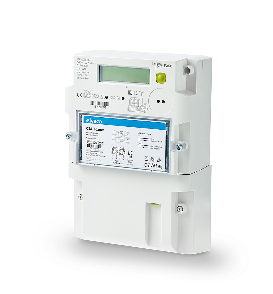 Landis+Gyr E350 är en väggmonterad elmätare som ger information om en stor mängd mätdata med hög precision. Mätaren kan beställas för 1-fas- eller 3-fassystem samt med eller utan brytare. Genom att använda mätaren tillsammans med Elvacos mätarkommunikationsmoduler CMi1020 eller CMi1020w kan all mätdata konverteras till M-Bus/Trådlös M-Bus och levereras till ett mottagande system.